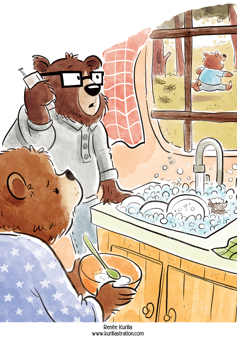 I’m not entirely sure how strange a concept this is to other creative folks, but I’ve discovered that while I’m working on illustrations for a book, I’m thinking about everything. I mean, really…all the things. My mind jumps back and forth from the decorations in my childhood bedroom, to my friend’s desire to own a corgi, to my failed attempt at making beef stew the night before, to wondering if I remembered to take the garbage out. I try to block out that last type of thought because those are the distractions that have the ability to make me get up and lose focus. For instance, all of a sudden desperately needing to do the dishes; that stuff can wait. Or can it? Gah!