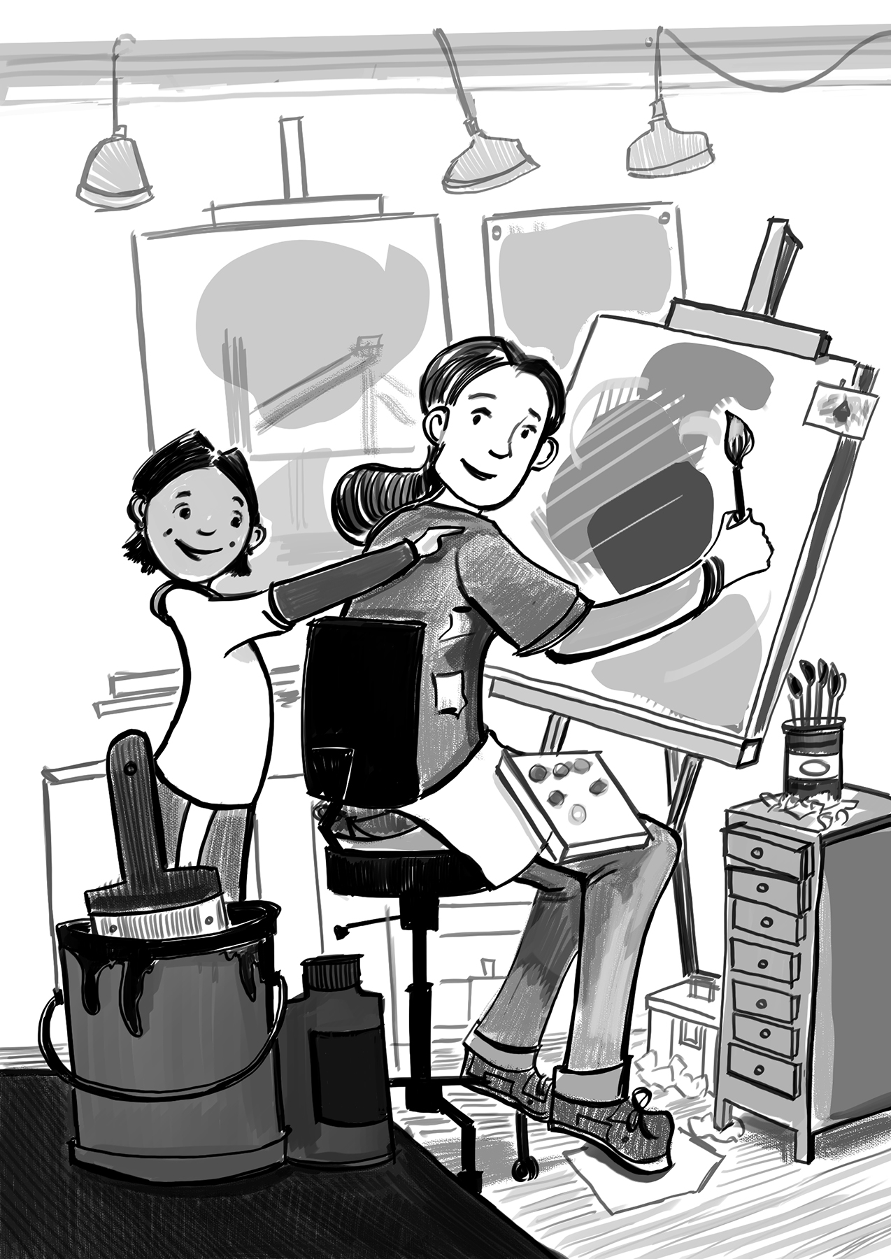 When I’m working my favorite stage is the development part, or the dummy. This is where I’m trying to marry pictures and words together. What I love at this stage is that anything is possible, which is so invigorating. I always equate this stage to music. I’m in pursuit of the perfect rhythm. Images that can make a punch line funnier, or a touching moment more poignant. This is especially gratifying when I’m both the author and illustrator. When I’m in the zone, I can get lost working on this stage and the hours fly by. I also experience the same sensation when I’m working on the final art, but I make sure to take more breaks then so that I’m not mindlessly rendering.