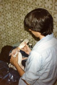 KS: Alas, this was before the advent of digital cameras! I was able to dig up one of my mom feeding a piglet, but the monkeys were a (thankfully) short-lived sitting gig for friends – they’d wake us up at dawn.