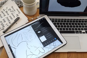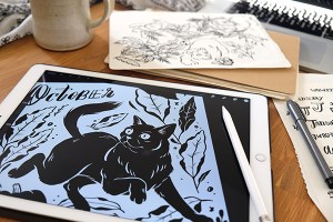 I spent a little time fine-tuning all the pressure sensitivities to mimic my favorite pen, and then I was done! The whole process took about 30 minutes and I was set for drawing with the line quality of my analog brush pen, but with the digital benefit of layers and erasing. I took the time to prep all the calendar layouts for the year and created a template file, so I could just plug in my new drawings each month and easily share the file via social media. Read more about my process, how to create your own brush, and my sharing experience on my blog.