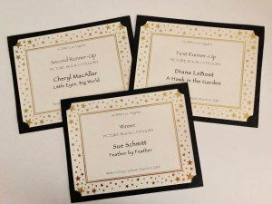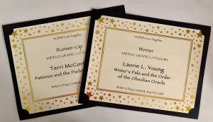 It was another year of very strong entries in the SCBWI L.A. Writers Day Contest. As usual, manuscripts were submitted in four categories: Young Adult, Middle Grade, Picture Book, and Other (which includes poetry and non-fiction). First place winners in each category receive free tuition to next year’s Writer’s Day, as well as a manuscript critique from one of this year’s faculty members. If you’d like to contact any of the winners to request their manuscript or discuss publication, please let us know!