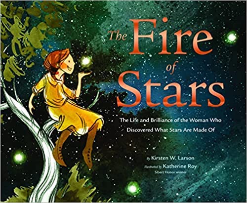 The Fire of Stars: The Life and Brilliance of The Woman Who Discovered What Stars Are Made Of by Kirsten W. Larson, illustrated by Katherine Roy, is a Junior Library Guild selection. It received four starred reviews from Publishers Weekly, Shelf Awareness, School Library Journal, and Kirkus, which called the book “a luminous thematic pairing.”