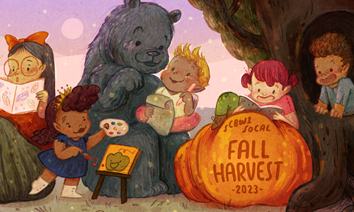 Images provided by SCBWI SoCal; Fall Harvest 2023 graphic by Shiho Pate.