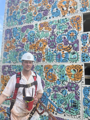 I did a mural in Austin last month—it was like Survivor, but with paint brushes. It was 107 degrees. I had to be in a lift with metal bars and that type of heat, any time you touch the bars, it was like listening to bacon frying in the pan. But man, it was all worth it. It’s the biggest thing I’ve ever painted in my life. It was over 2000 square feet, and it was all done with a four-inch brush. It was challenging at best, but I’m so proud of it.