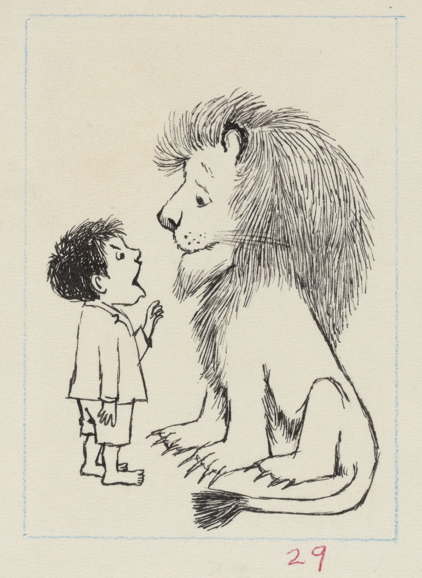 - “WTPierre” Maurice Sendak, Pierre, 1961-2, ink on paper, 4 ¼ x 31/2 in. ©The Maurice Sendak Foundation