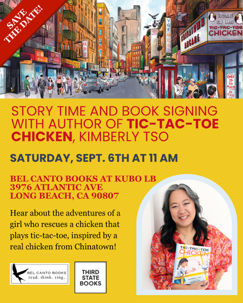 The SCBWI SoCal Illustrators group will be having their monthly meetup on Saturday, September 6, 2025, at 11:00 a.m. in Long Beach to support local, debut author Kimberly Tso! She will be doing a storytime and book signing event at Bel Canto Books at KUBO LB for her debut book Tic-Tac-Toe Chicken. Afterwards, there will be time to catch up, sketch, and share any artwork you’d like feedback on!