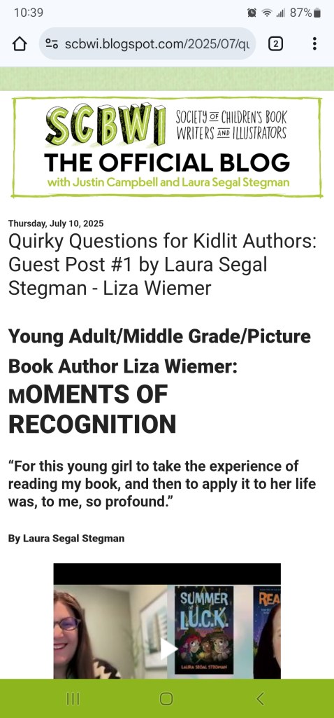 Laura Segal Stegman, author of the Summer of L.U.C.K. middle grade trilogy, is July’s guest poster on SCBWI’s official blog (https://scbwi.blogspot.com/). Her Quirky Questions interview series spotlights kidlit authors Liza Wiemer (7/10), Jonathan Roth (7/17), Amar Shah (7/24), and Laura Taylor Namey (7/31). She will also present at SCBWI SoCal’s 9/28 Zoom MeetUp on Writing Effective Author Bios.
