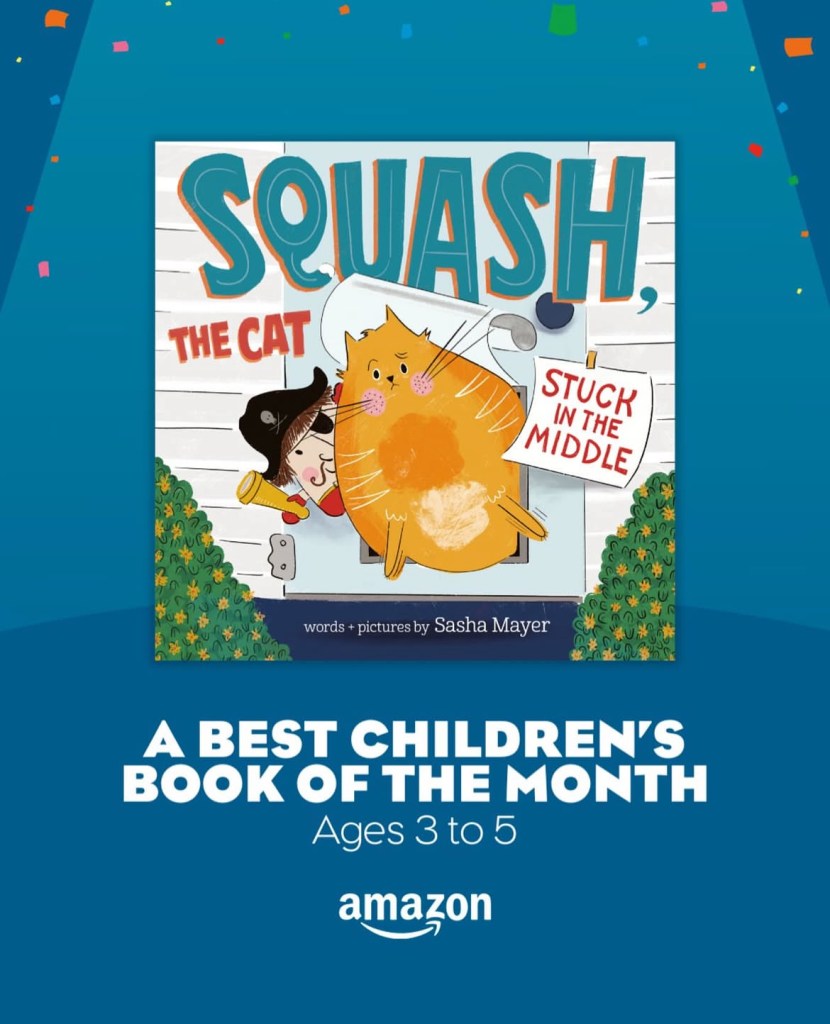 Squash, the Cat: Stuck in the Middle, the second book in Sasha Mayer’s Squash, the Cat series, released Feb 2025. It was chosen as “Book of the Month” and an “Editor’s Choice” pick on Amazon.