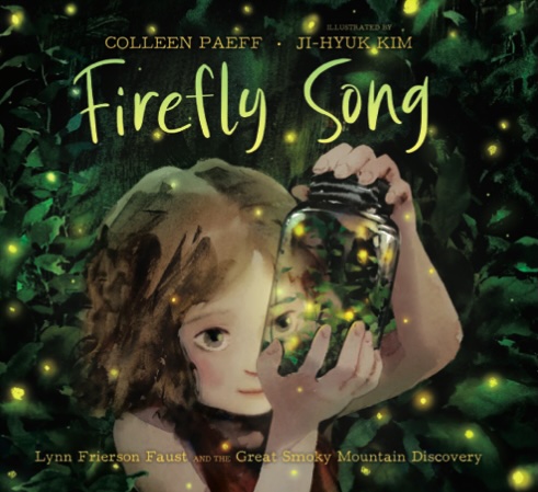 Firefly Song: Lynn Frierson Faust and the Great Smoky Mountain Discovery, by Colleen Paeff, illustrated by Ji-Hyuk Kim, Margaret K. McElderry Books, ages 5–10, Nonfiction Picture Book, ISBN: 9781665931847, release date: 6/10/2025.