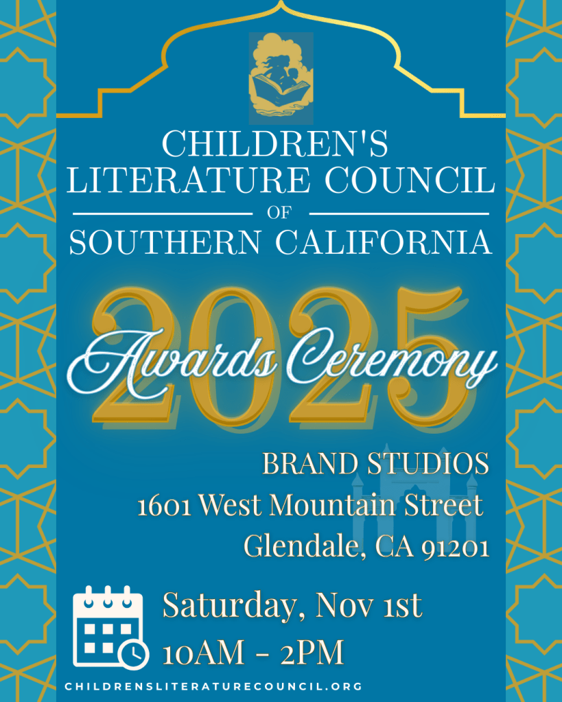 Sign up now to attend the 2025 Children’s Literature Council of Southern California Awards Ceremony! The ceremony will take place Saturday, November 1, 2025, from 10:00 a.m. to 2:00 p.m. at Brand Studios in Glendale, CA. Attendees will have a chance “to see acceptance speeches from the award winners, get books signed by those in attendance, and connect with others in our Southern California book loving community.” Buy your ticket here today!