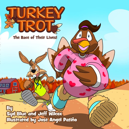 Turkey Trot: The Race of Their Lives, by Syd Blue and Jeff Wilcox, illustrated by Jose Angel Patiño, Syd Blue Productions, ages 4–8, Picture Book Fiction, ISBN: 9798999624406, release date: 9/21/2025.